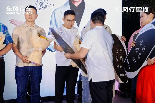 在热烈的掌声中,活动迎来了最激动人心的时刻——交车仪式。来自济南、滨州、聊城、菏泽、济宁、淄博、潍坊七大城市的14组首批星海V9越享版车主代表,共同登上舞台。东风风行的领导代表为车主们郑重递上鲜花与象征新征程的车钥匙,现场氛围热烈而温馨。值得一提的是,为表达对首批车主的真挚心意,品牌特别准备了豪华全套露营装备交车礼——包括帐篷、天幕、户外餐桌椅等齐全配置。这不仅是一份礼品,更是一种全新的生活方式提案。