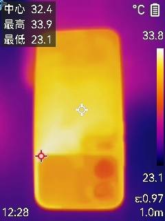 极低的功耗带来的是无感的温度,15分钟一局游戏下来,背部温度仅为33.9度。