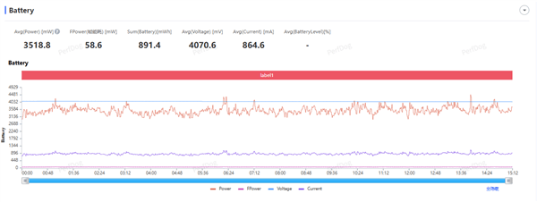 游戏平均功耗3.51W,每帧能耗58.6mW。这个平均功耗基本上是上一代骁龙8至尊版运行《王者荣耀》时的功耗表现。