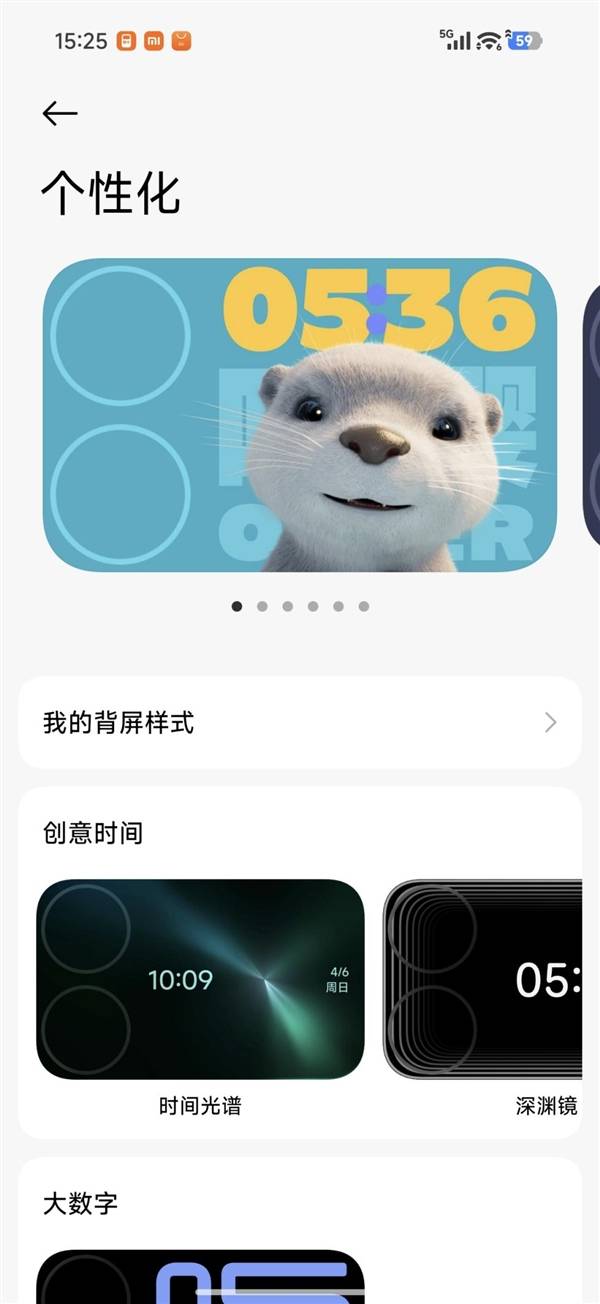 点开设置即可看到妙享背屏的设置界面,在背屏个性化中即可调整。当然,在预设好后,也能在背屏主界面长按进行直接切换。