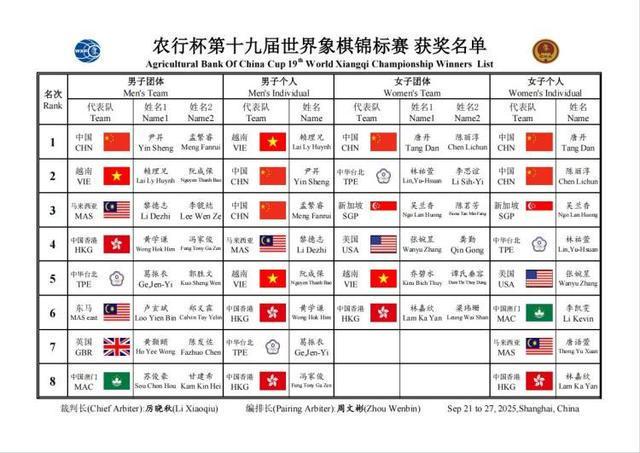 经过为期一周紧张激烈的比赛,产生逾1200盘对局,9月27日下午,农行杯第十九届世界象棋锦标赛、第五届上海杯象棋大师公开赛在上海北外滩地标建筑——世界会客厅落下帷幕。