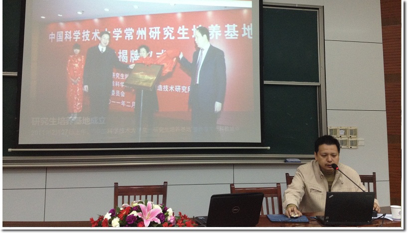 任命文件宣读完成后,校研究生会主席刘少辰主席宣读中国科学技术大学研究生会的贺信。贺信中对先进制造研究所的科研和研究生工作做出了积极肯定。培养基地第一届研究生会主席吴毅华代表培养基地研究生会主席团发言,争取为培养基地研究生提供开阔的科研交流平台,创造活跃的气氛。