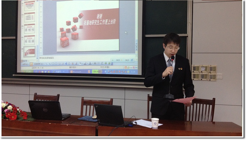 骆敏舟副所长在致辞中表示,希望通过成立培养基地研究生会进一步增进研究生间的交流与学习,促进相互之间的感情。随后梁副所长对培养基地研究生培养基地的基本情况进行了详细介绍。接着牛润新副主任对培养基地研究生会的前期筹备工作进行了全面总结,孔令成副所长宣读了任命文件。